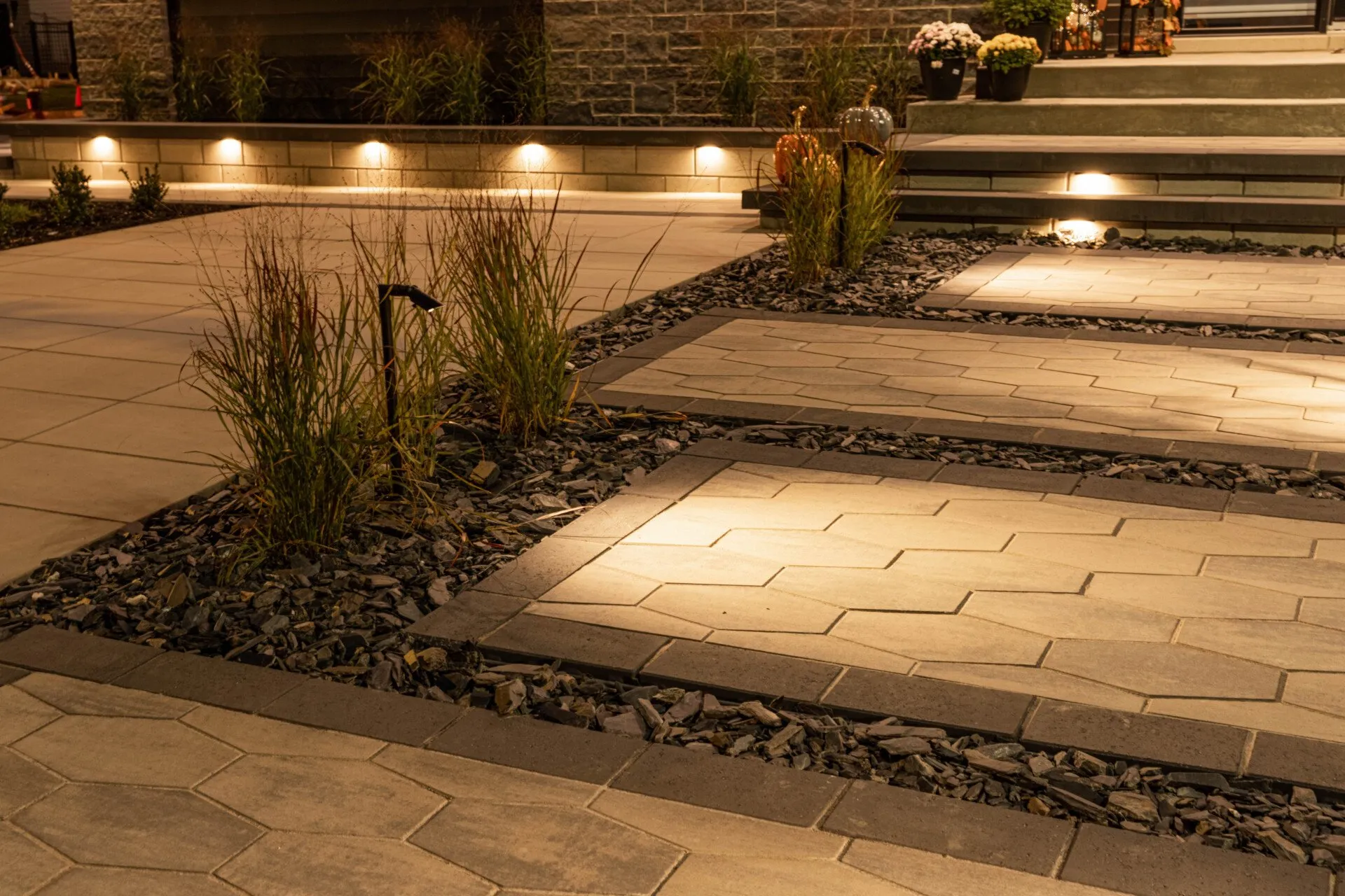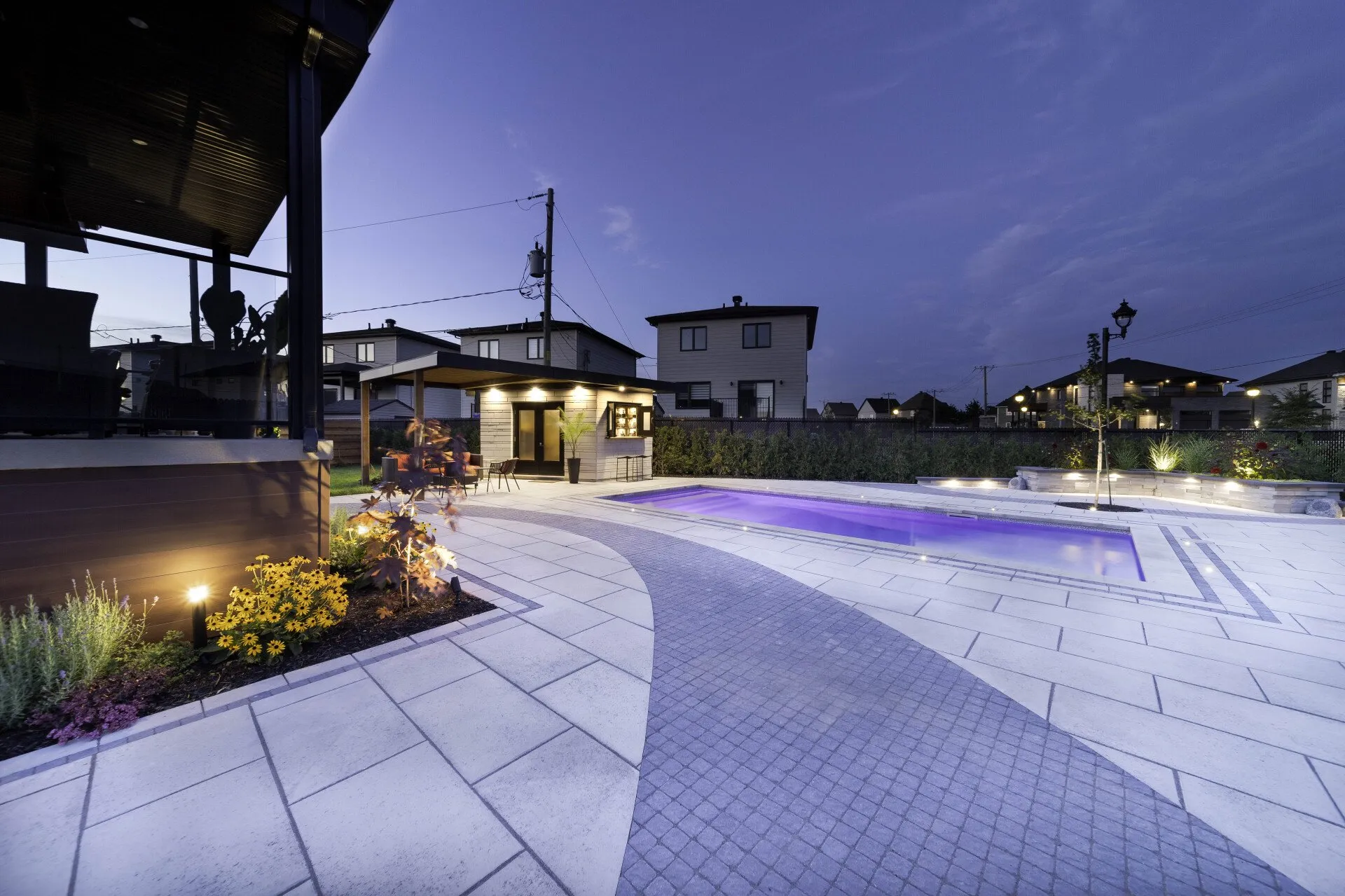 Profitez de votre jardin le soir grâce à un éclairage soigneusement conçu pour créer une atmosphère accueillante.